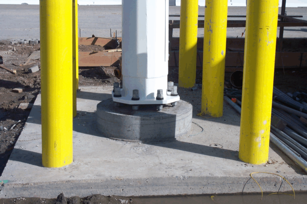 Soon after installation, it was discovered that the light pole second mode of vibration was a significant problem with vortex shedding, experiencing resonance conditions and significant movement at relatively low and commonly occurring winds.