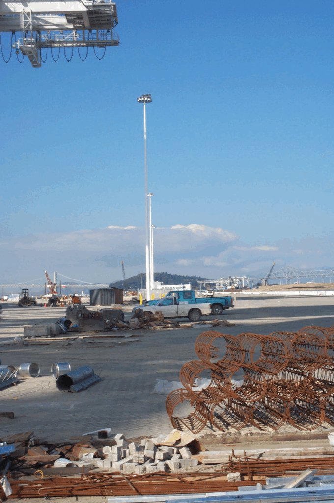 In the late 1990s, very tall high mast lighting was installed at the Port of Oakland for the new Berths 55–56 yard. The tall light poles reduced the number required, saving valuable yard space. In their design, the primary mode of vibration was analyzed, and it was determined that wind induced vibration from vortex shedding during probable winds would not be a problem.